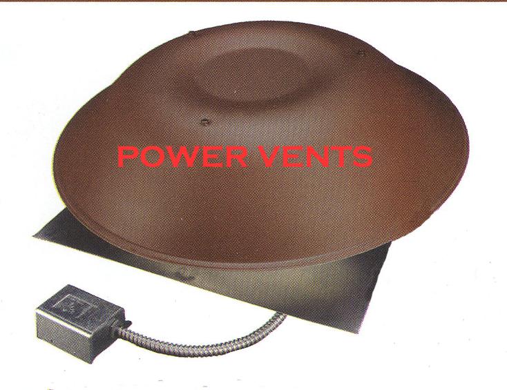 Pictured above are Static Roof Vents. We recommend metal vents which will stand up much better than plastic during a storm. While metal may dent during a hail storm they will not crack open like the plastic vents. We saw an example of severe damages to a doctor's home because of cheap plastic vents. What happened was a hail storm while he and his family were on vacation. The rains poured down and landed on the beautiful wood plank flooring. When they arrived back home they were faced with a buckled wood floor which was totally ruined.